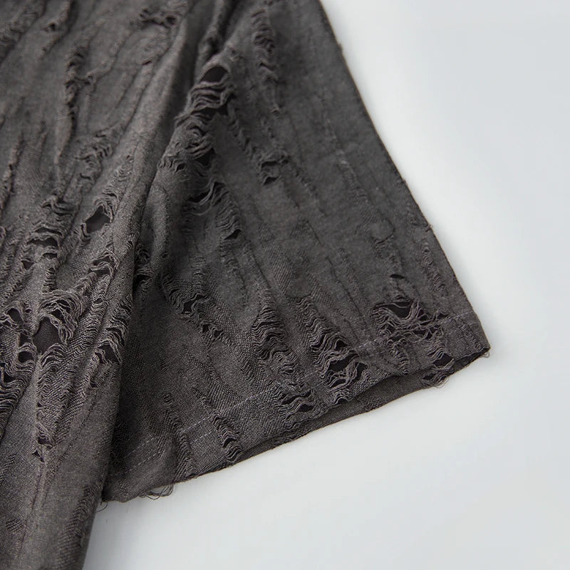 Men s Casual Short Sleeve T-Shirts with Vintage Distressed Texture and Stylish Button Lapel V Neck Design for Summer Wear