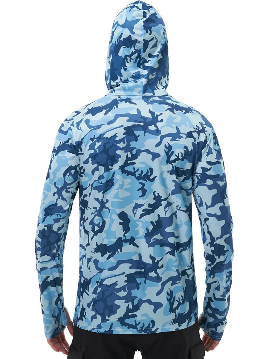 Angling Shirts for Men Camouflage Print Long Sleeve UV Sun Protection Hoodie with Facewear for Outdoor Hiking Running