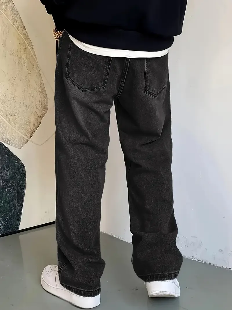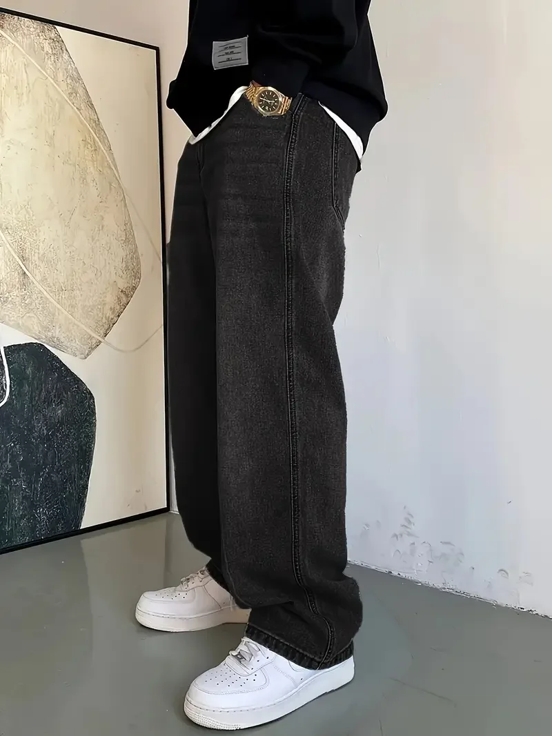 Mens' Fashionable Light Blue Straight Leg Jeans - Loose Fit, Casual Trend, Hip-Hop Street Dance Inspired, Skateboard Cycling Spo