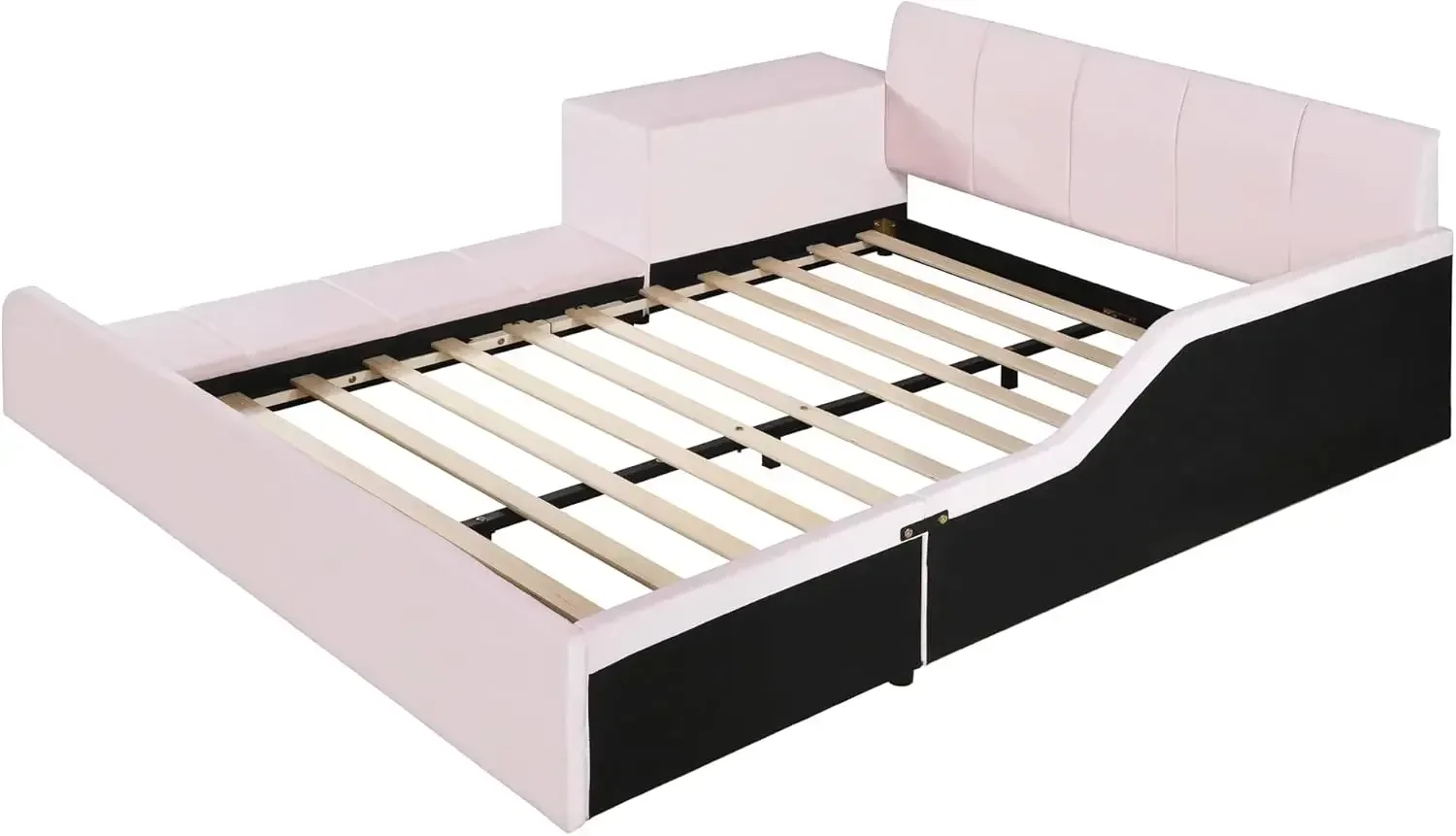 - [Safety Design] - Featuring a strong headboard, footboard, and side rails, this bed ensures a steadfast and secure sleeping surface. Designed with the growing child in mind, the bed showcases upholstered bed rails that prioritize safety while enhancing overall comfort. The integration of a cleverly designed wooden slat enhances stability and tranquility, providing a peaceful and secure sleeping experience.